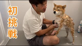 柴犬・豆柴 パパと一緒なら大丈夫。初めてのシャンプーに挑戦しました
