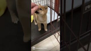 柴犬・豆柴 【柴犬 子犬】この壁越えられるのでは?と気づき始めた生後19日目の子犬