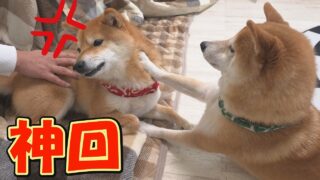 柴犬・豆柴 このあと画面右側の柴犬が戦わずして敗北し、思わず笑ってしまいます。