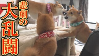 柴犬・豆柴 こたつの場所取り争いがとんでもないことになり、女子柴犬が落ち込んでしまいました・・・