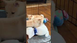 柴犬・豆柴 このぬいぐるみ気に入ったみたい笑 #豆柴カフェ #豆柴子犬