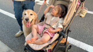 柴犬・豆柴 ママにいたずらが見つかった1歳児から助けを求めに来られるゴールデンレトリバー