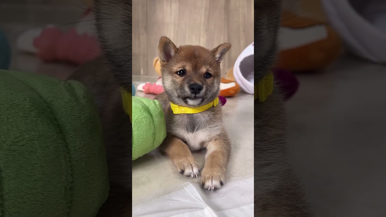 【豆柴犬】カメラ目線であくび🥱して眠たそうな子犬ちゃん😪💤