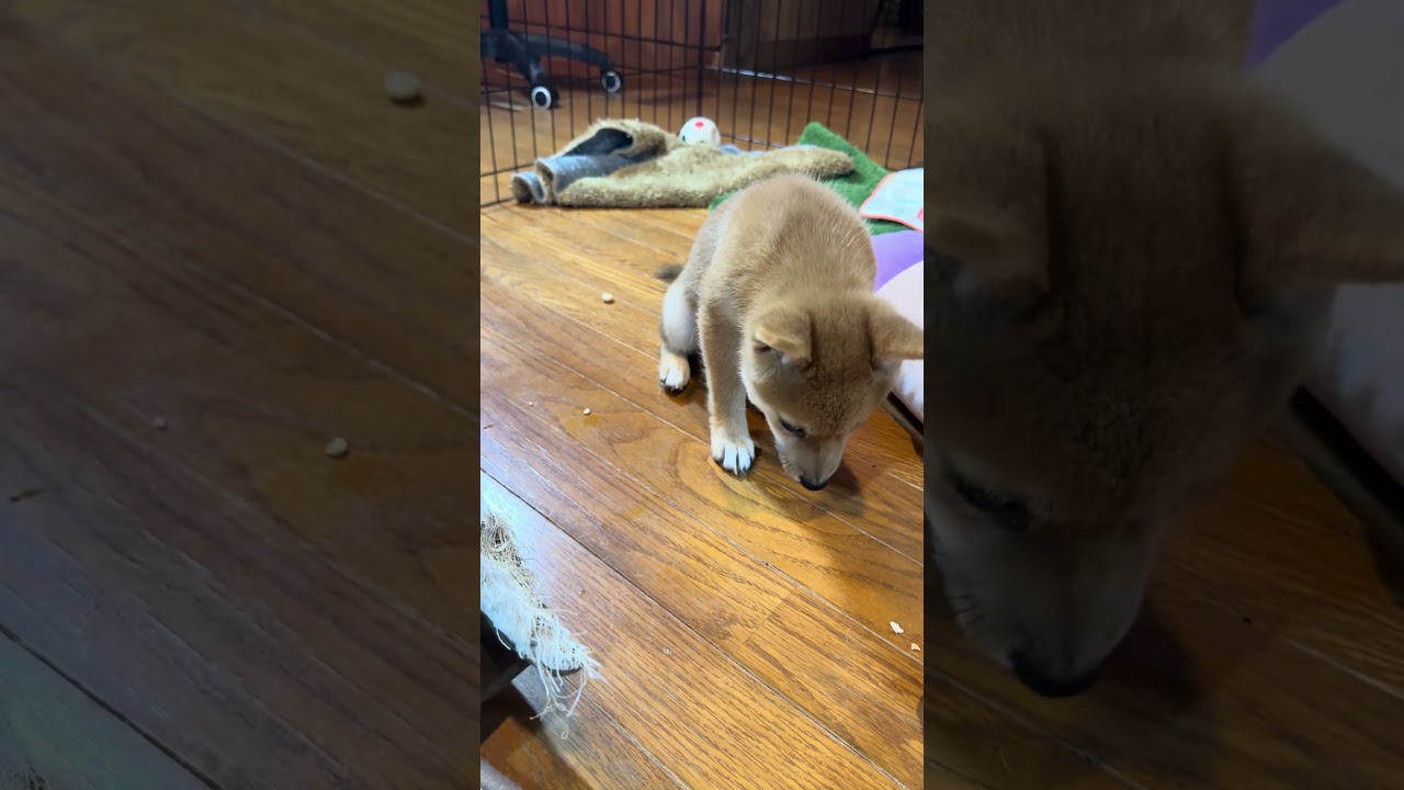 よかったね!武蔵くん!大好きなボーロだ♪ #豆柴子犬 #豆柴カフェ