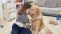 ママに甘えていたら嫉妬した1歳児に場所を譲ってあげる心優しいゴールデンレトリバー
