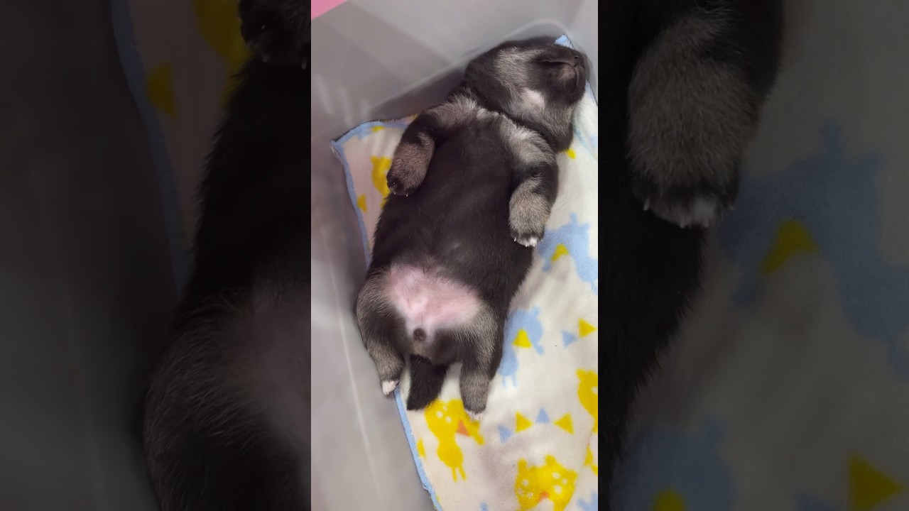 【豆柴犬】へそ天して熟睡してる赤ちゃんの足がピクピクしてて可愛すぎる💕🫶