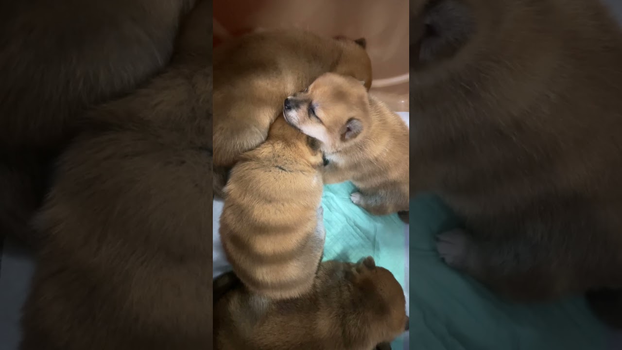 【豆柴犬】くっついて熟睡している可愛い赤ちゃん達🥰💤