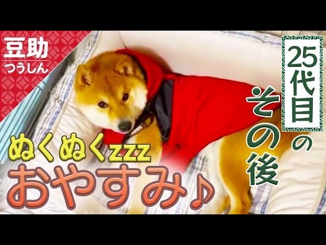 柴犬・豆柴「豆助んち」の25代目豆助だよ! 寒いからオカンさんがぬくぬくのダウンと毛布を用意してくれたね♡ オカンさんの優しい声でおめめがショボショボしてくるね。幸せな眠りだね。おやすみ、豆助。