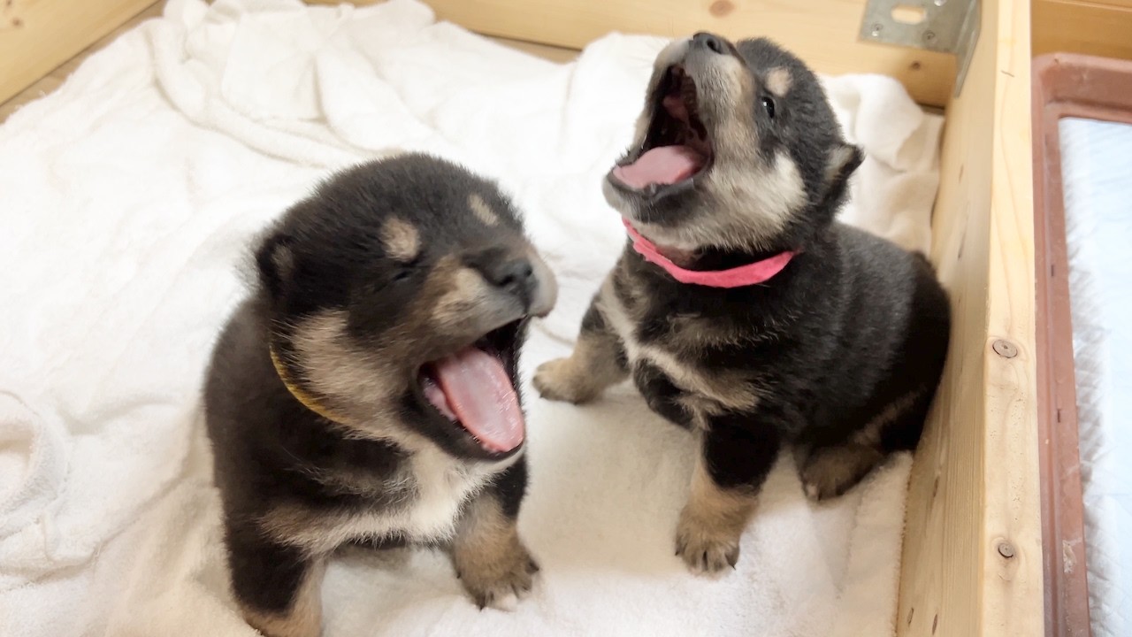 【柴犬 子犬】犬らしい動きが出来るようになってきた生後23日目の子犬たちがあどけなくて可愛い