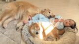 最近寒くて散歩に行きたがらないひまりと、姉を見て真似る弟ゆきち。