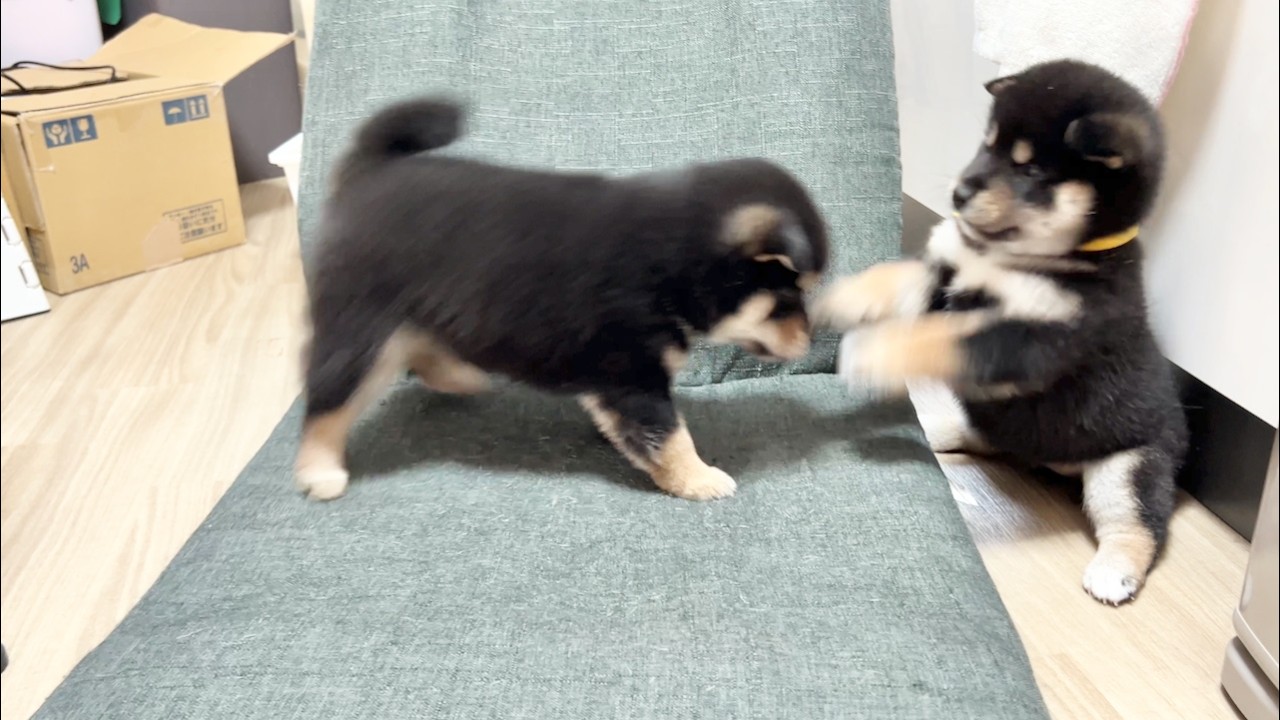 【柴犬 子犬】遊びの駆け引きでやんのかステップが炸裂する子犬