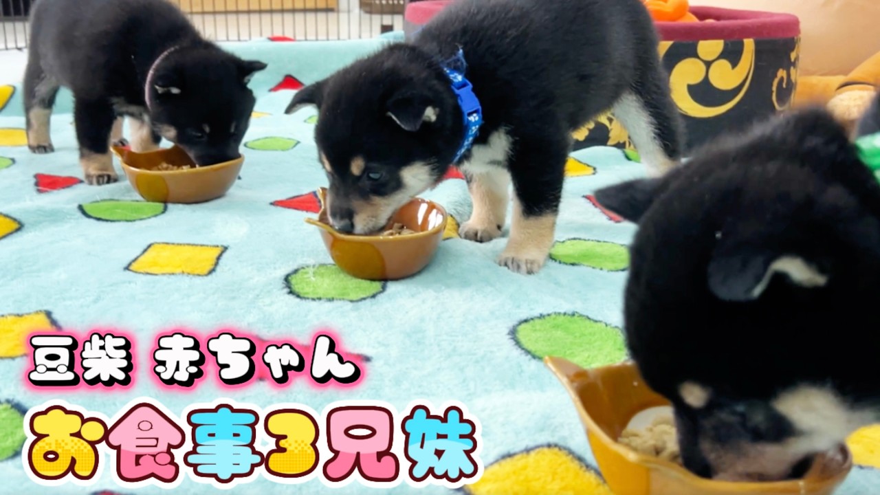 【豆柴犬】赤ちゃ兄妹の可愛すぎるてんやわんやなお食事会!“子犬と癒し”まめしば亭ブログvlog