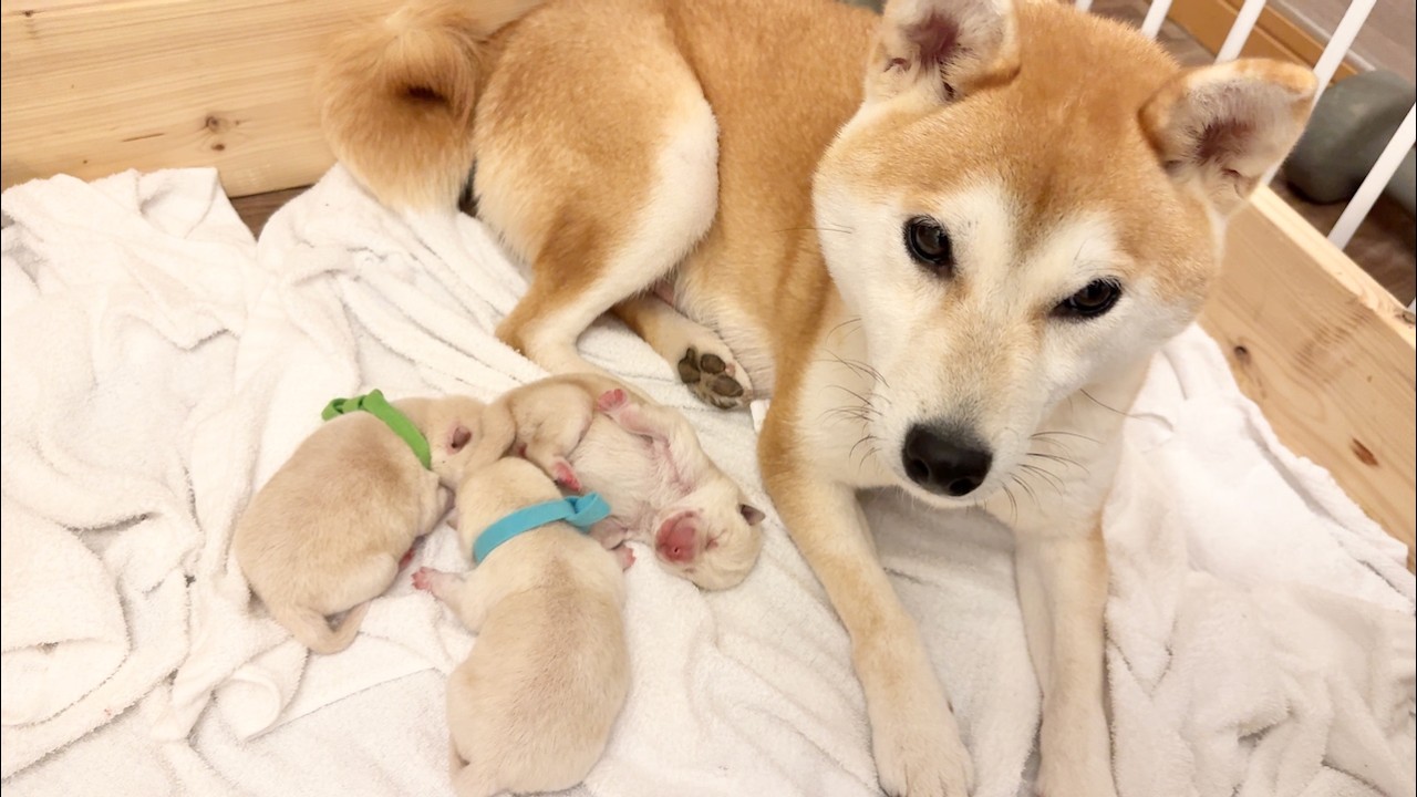【柴犬 子犬】激レア過ぎるみんな白毛の子犬たちの生後1日目の様子はこちら