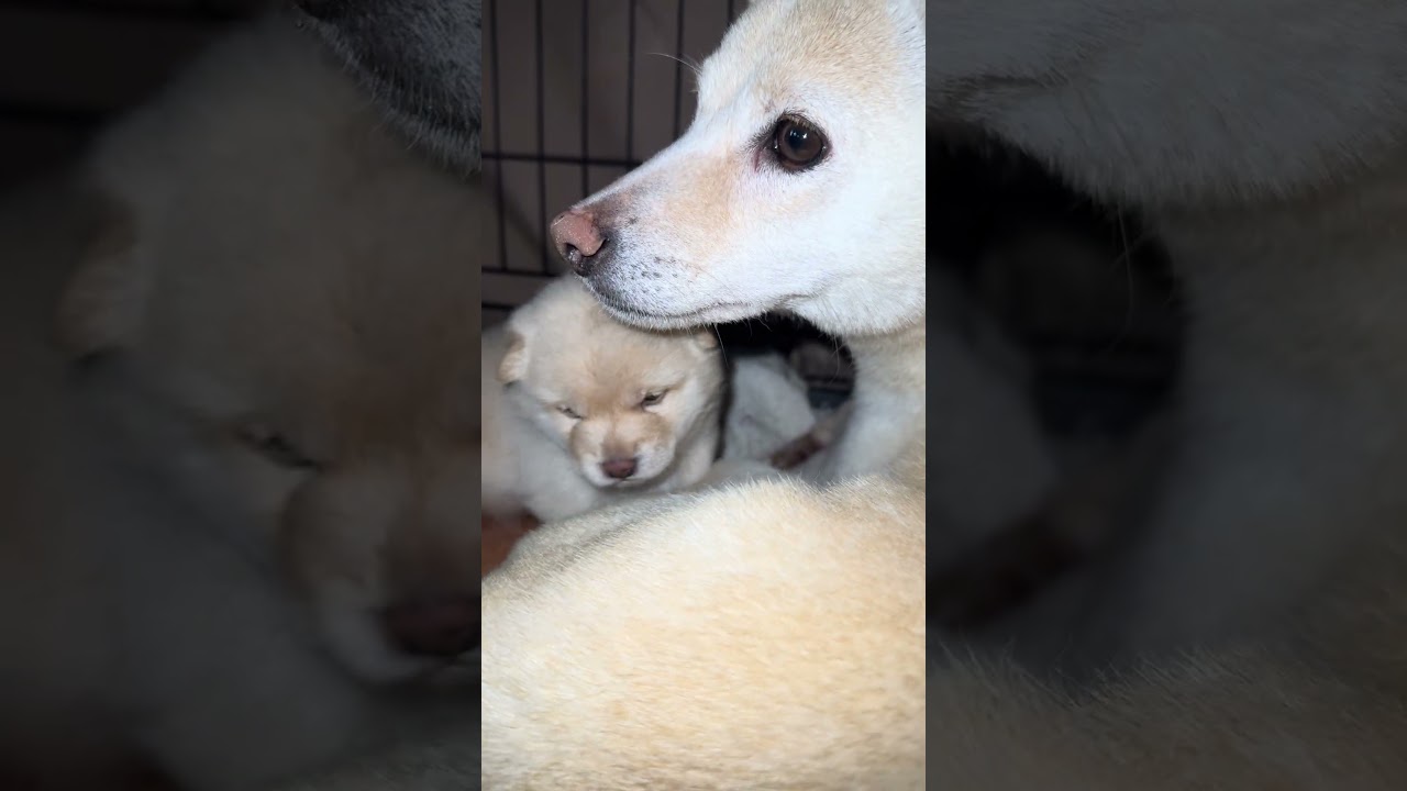お母さんと一緒 #豆柴カフェ #豆柴子犬