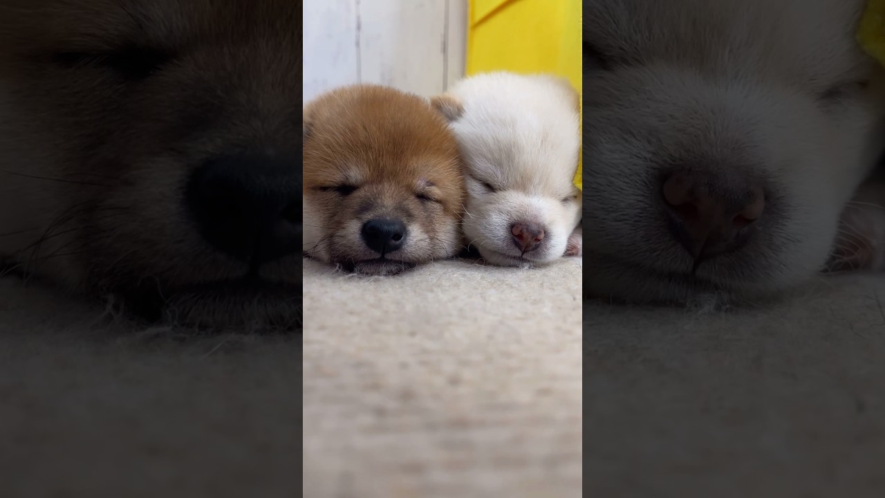 【豆柴犬】2匹寄り添って一緒に寝てる可愛い子犬ちゃん🐶💕