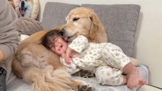 柴犬・豆柴 叱る時は叱り褒める時は褒めるまるで母親のようなゴールデンレトリバー