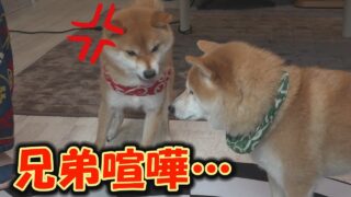 柴犬・豆柴 ノリの悪い弟に兄柴犬が注意すると、クスッと笑えちゃう兄弟喧嘩が始まりました。