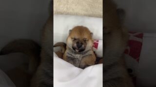 柴犬・豆柴 【豆柴犬】布団で気持ちよく寝てる赤ちゃん🥱💕
