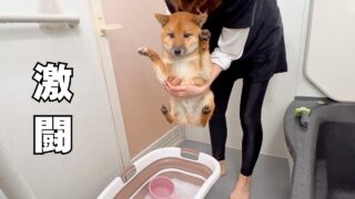 柴犬・豆柴 【過去一悲惨】お風呂嫌いな柴犬を丸洗いした結果…