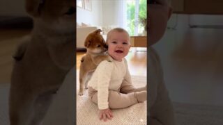 赤ちゃんに遊んでほしくてたまらない豆柴が尊い!🥺✨ The Shiba Inu puppy really wants to play with the baby! #柴犬 #豆柴 #赤ちゃん