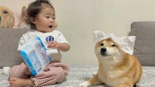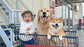 柴犬・豆柴 乗り物が大好きな豆柴とゴールデンレトリバーと1歳児をカートに乗せたらこうなりました…