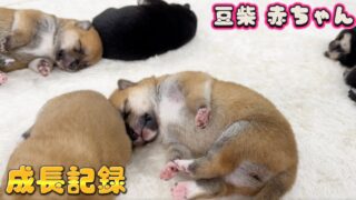 柴犬・豆柴 【豆柴犬】超可愛い7匹赤ちゃんの体重測定の様子!【子犬と癒し】まめしば亭ブログvlog